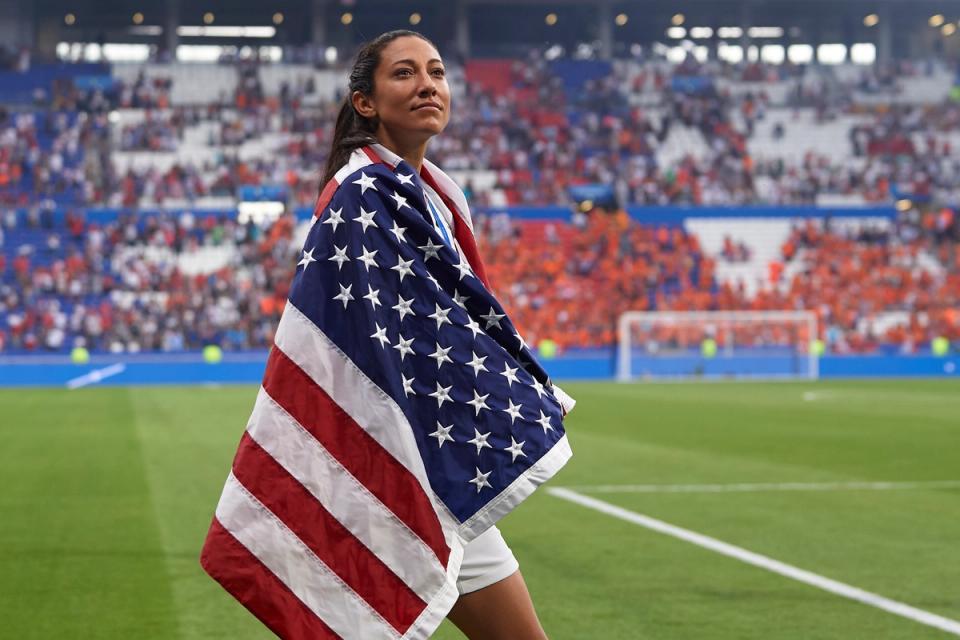 Christen Press celebrates after winning the 2019 FIFA Women's World Cup in Lyon, France. (Photo by Quality Sport Images/Getty Images)