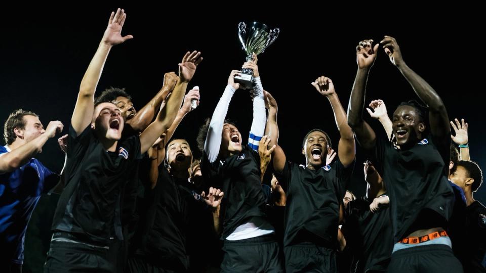 Ristozi FC lifting the 2025 Rowland Cup—Maryland's 100-year-old open championship